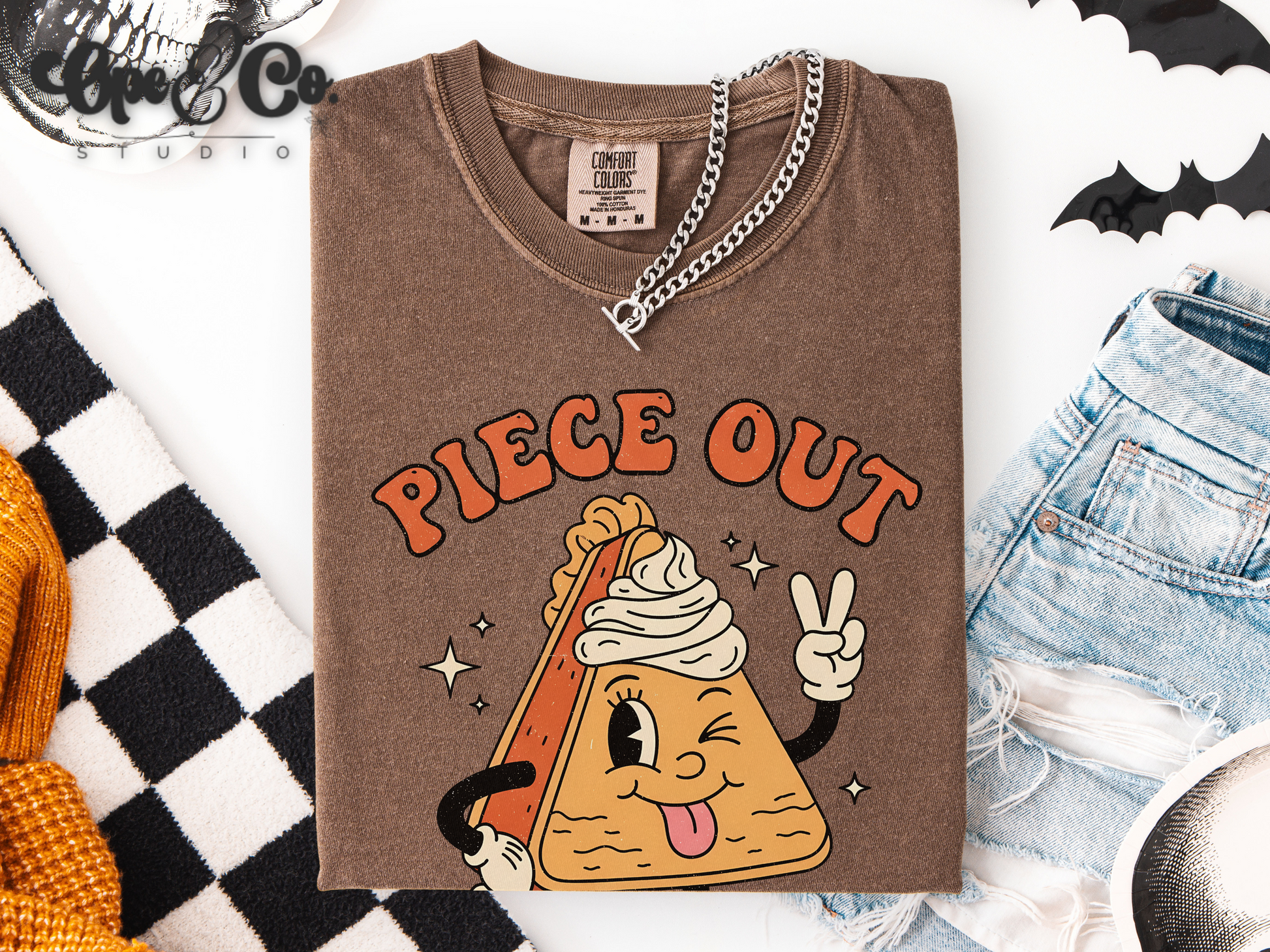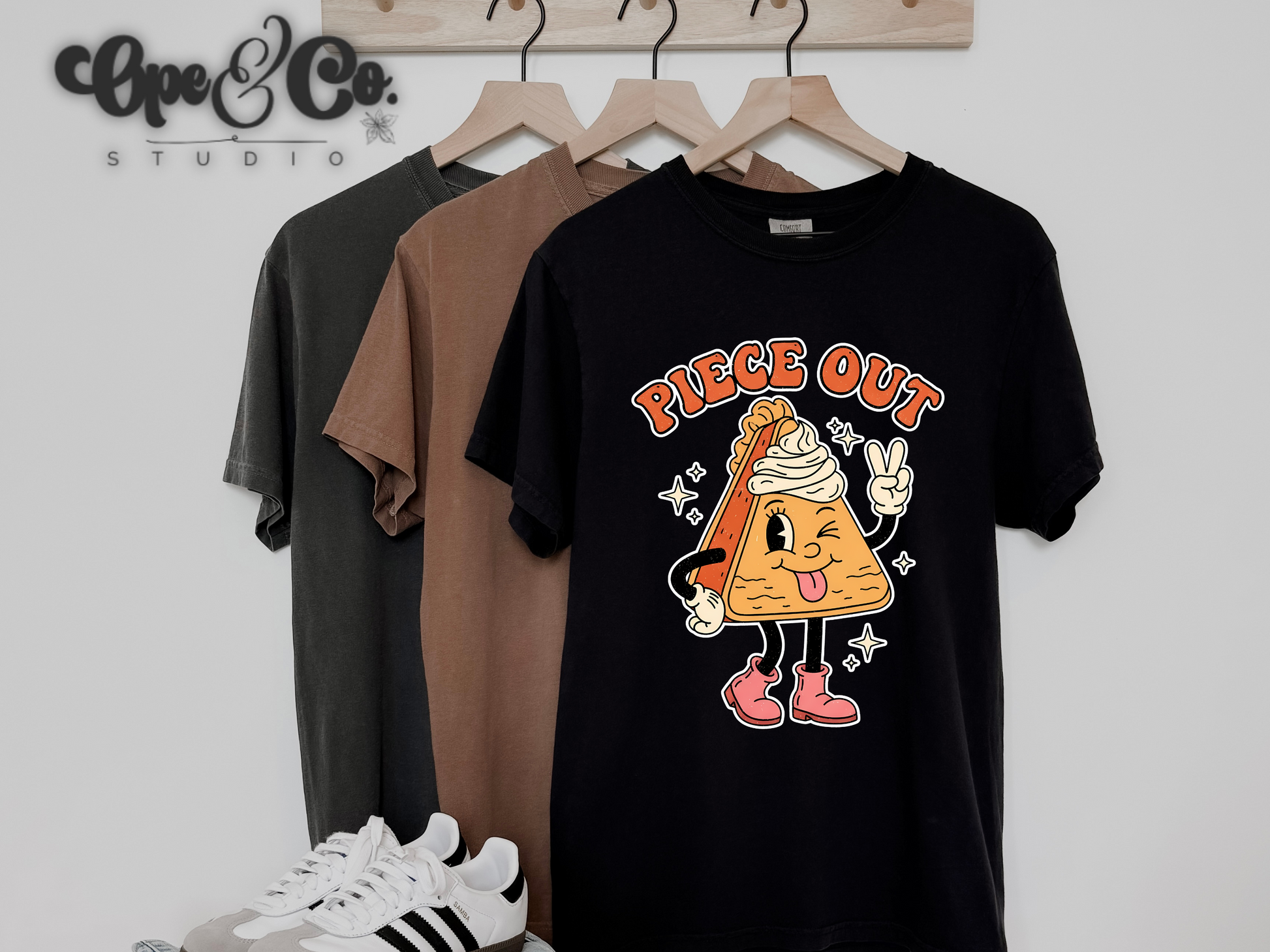 Our Piece Out tee features the cutest little animated pie slice, rocking pink boots, whipped cream hair, and a peace sign attitude. Perfect for anyone who’s all about dessert first — or who’s already halfway to a nap after that second plate.