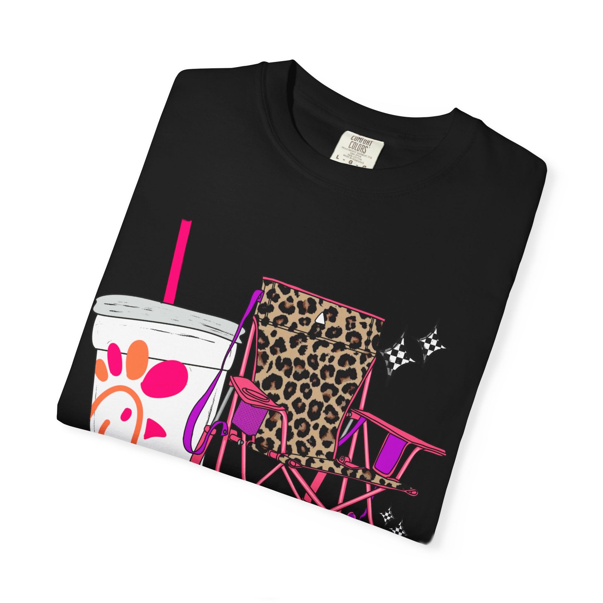 This tee is made for the sideline queens, drive-thru pros, and carpool legends. Featuring a bold pink camp chair, everyone’s favorite chicken cup, and a sprinkle of sparkle, it’s the perfect fit for weekend games, errands, or just looking extra cute while doing all the things 🐆✨